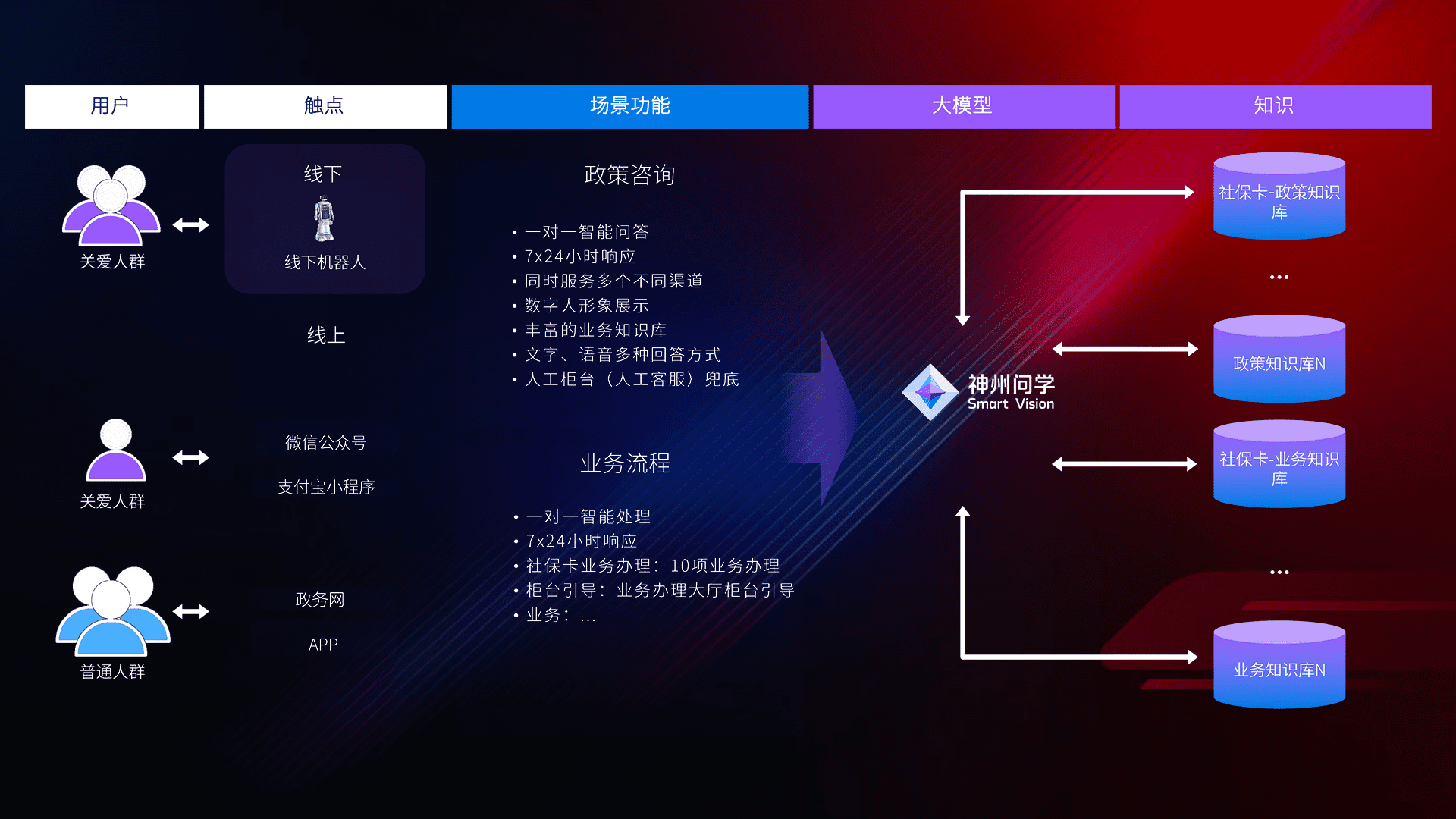 • 线上线下全覆盖:线上提供微信公众号、、、支付宝小程序、、政务网、、、、app多种渠道,,,,与线下机器人形成完整服务体系。。